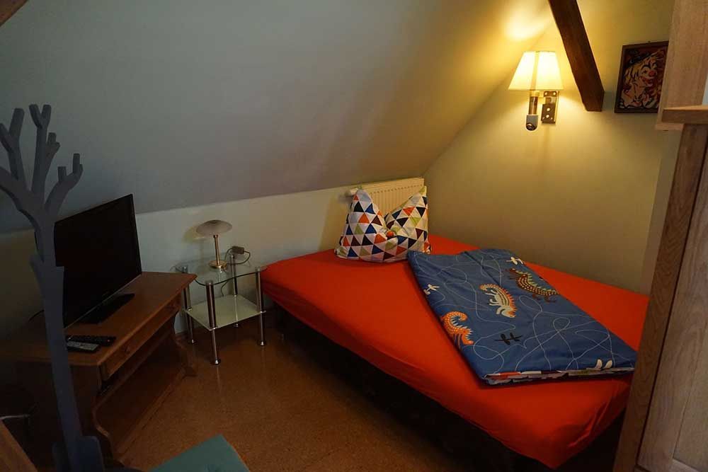 - Schlafraum (14 m²) mit Doppelbett und Kinderreisebett