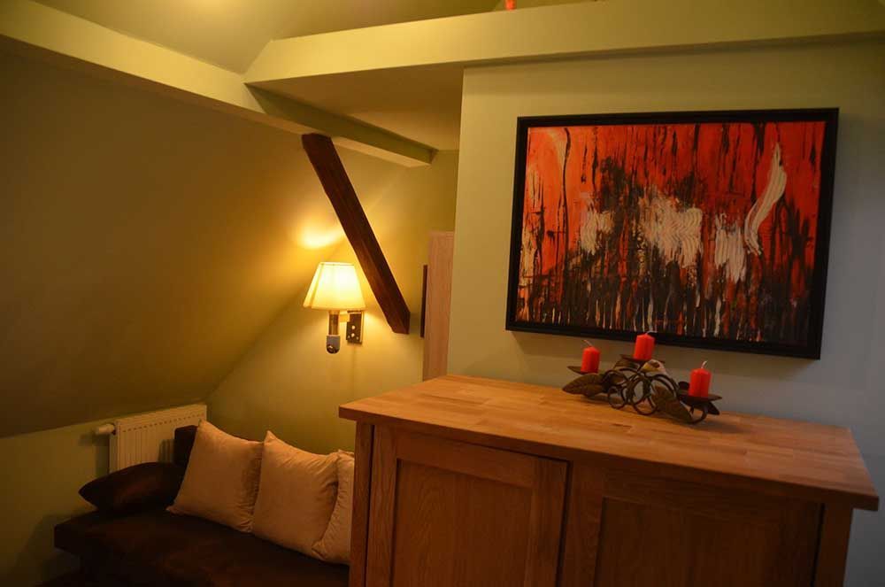 Unsere Ferienwohnung Lugbergblick ist 49 Quadratmeter groß und bietet Ihnen viele Annehmlichkeiten. Die FeWo ist ideal für Familien, die mit ihren Kindern Urlaub machen, eignet sich aber auch perfekt wenn Sie geschäftlich in Dresden zu tun haben. Der Wohnraum der Ferienwohnung ist 22 Quadratmeter groß und damit äußerst geräumig, um sich abends zu entspannen und Kraft für den nächsten Urlaubs- oder Arbeitstag zu sammeln. Der Schlafraum unserer Ferienwohnung ist 14 Quadratmeter groß, in ihm befindet sich ein Doppelbett, das herrlich bequem ist und Ihnen beste Nachtruhe garantiert. Da unsere Ferienwohnungen im Grünen liegen – im ehemaligen Fischerdorf Zschieren nahe Dresden –, sind Störungen Ihrer Nachtruhe durch lauten Verkehr nahezu ausgeschlossen. In der Ferienwohnung befinden sich zudem zwei weitere Schlafmöglichkeiten, die beispielsweise von Ihren Kindern oder Kollegen genutzt werden können. Damit Sie Ihre Mahlzeiten während Ihres Aufenthalts bei uns selbst zubereiten können, verfügt unsere Ferienwohnung über eine Küchenzeile. Sie befindet sich im Wohnbereich.